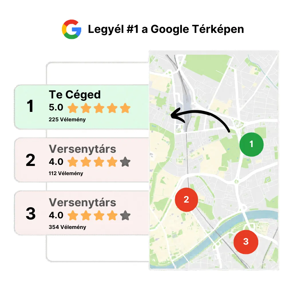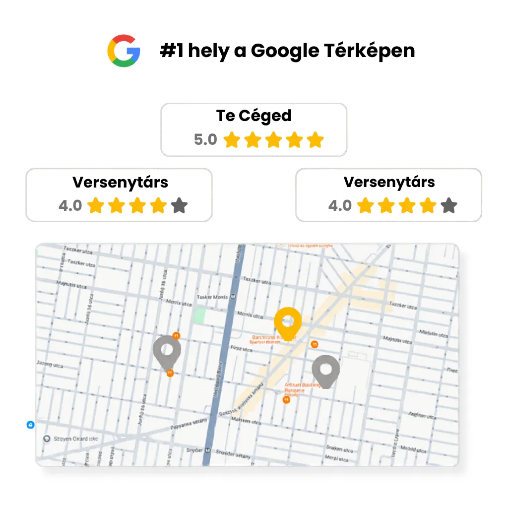 Vállalkozásod megérdemli azt a hitelességet és bizalmat, amelyet egy erős online jelenlét biztosít. Automatizált Google-értékelés kezelő megoldásunkkal könnyedén gyűjthetsz több értékelést, vonzhatsz új ügyfeleket, és lépést tarthatsz a versenytársakkal.