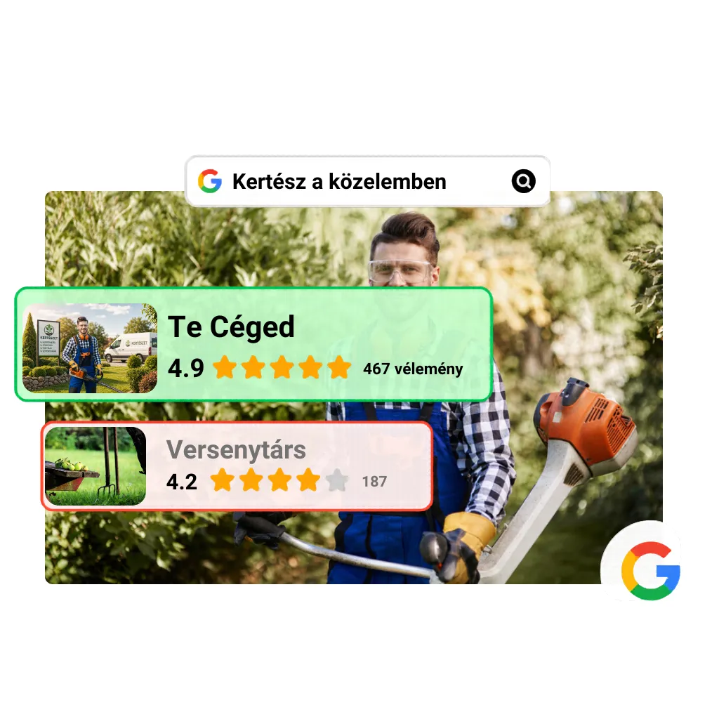 Automatalizált Google-véleménykezelő eszközeinkkel kitűnhetsz a versenytársaid közül, az elégedett ügyfeleket pedig a márkád elkötelezett követeivé alakíthatod.